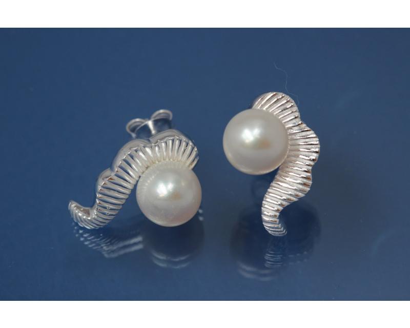 Ohrstecker Blatt mit SW - Perle 925/- Silber poliert, ca.Maße H 19mm, B 13mm,mit SW-Perle ca.Maße Ø8,5mm, Steckerstift 10mm lang, AØ0,9mm Die Oberfläche wurde poliert und zum Schutz des Grundmetalles 925/- Sterlingsilber und als zusätzlichen Anlaufschutz galvanisch mit hochwertigem Silber veredelt. Gewicht per Stück ca.2,8gr
