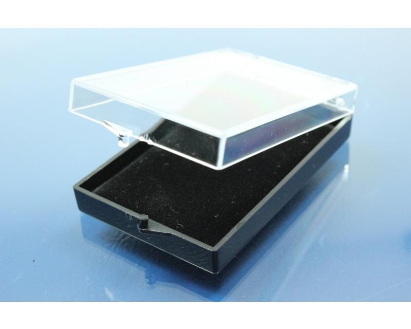 Etui Plastik schwarz / glasklar, 70x45x14mm mit Veloureinlage (Art.Nr.0801405)