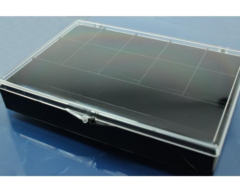 Box, schwarz/glasklar, 11 Fächer, Aussen 160x111x25mm (10 Fächer 30x35mm, 1 Fach 160x35mm)