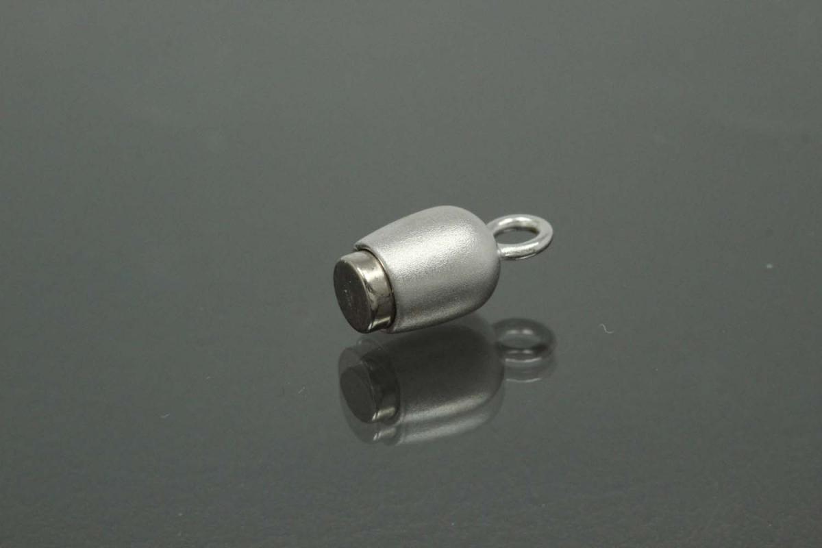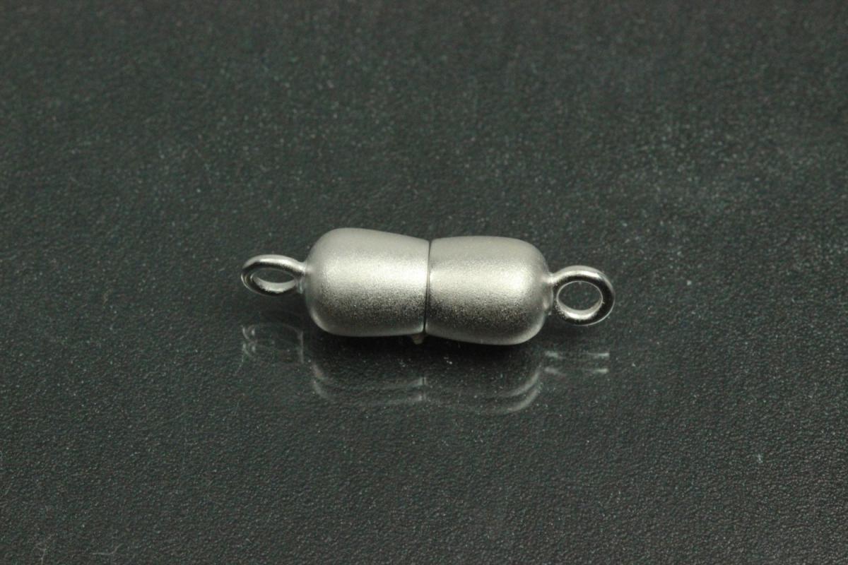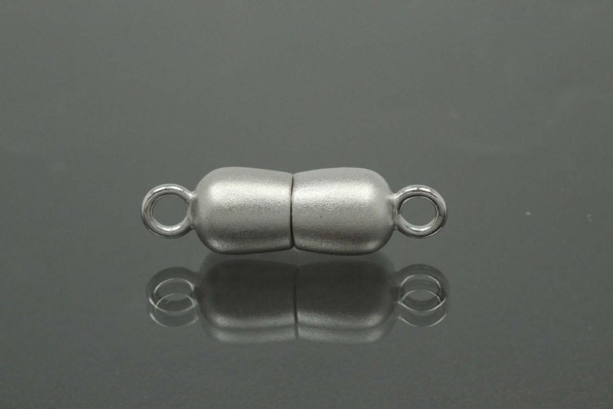 Magnetschließe Doppelkugel lang, Maße ca. Ø6,5x22,5mm unecht rhodiniert mattiert
