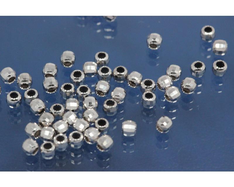 Kugeln 925/- Silber rhodiniert polierte facettierte Ausführung ca.Ø2,5mm, Bohrung ca. Ø1,20mm