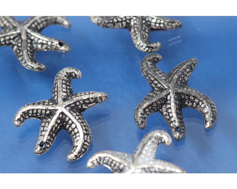Seestern, Plastik silberfarben antik, ca. 18,5x21mm, Öse innen ca. 1,2mm