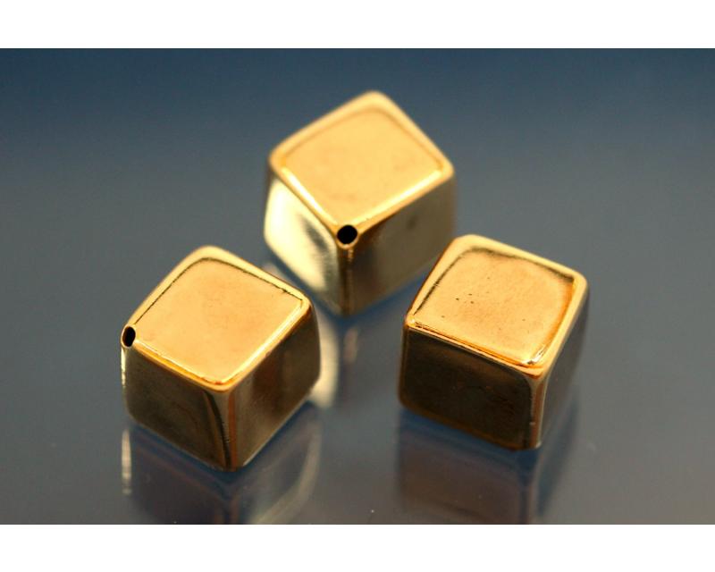 Würfel diagonal gebohrt, ca. 10x10mm, hole approx Ø1,5mm, 999/- Silber vergoldet